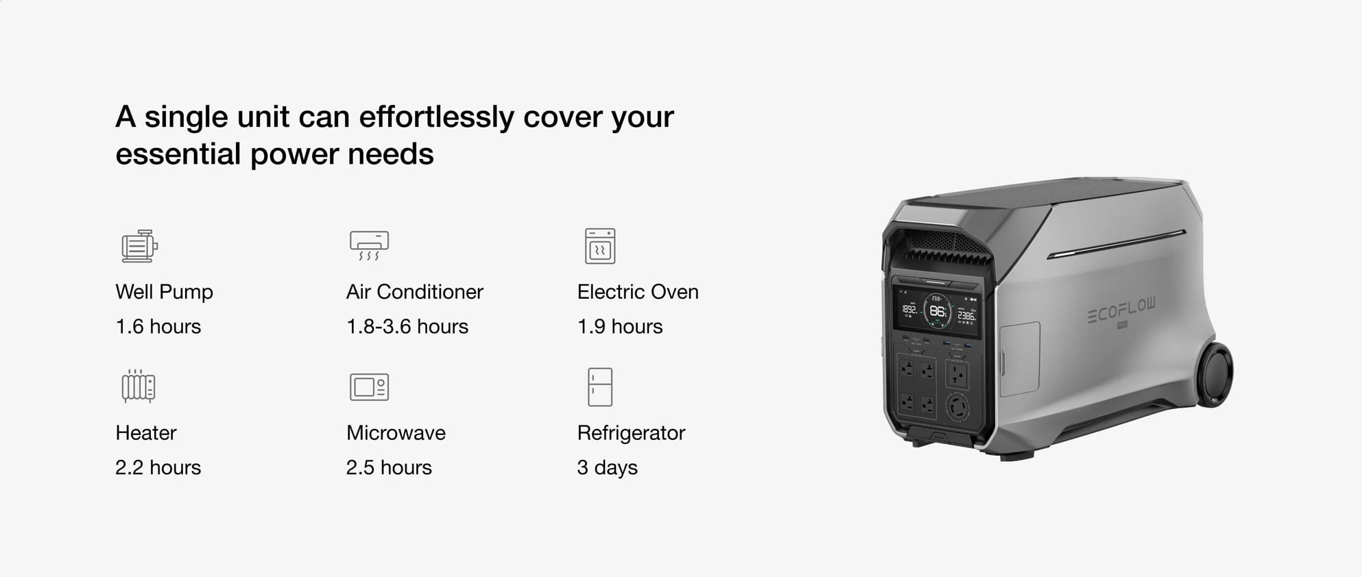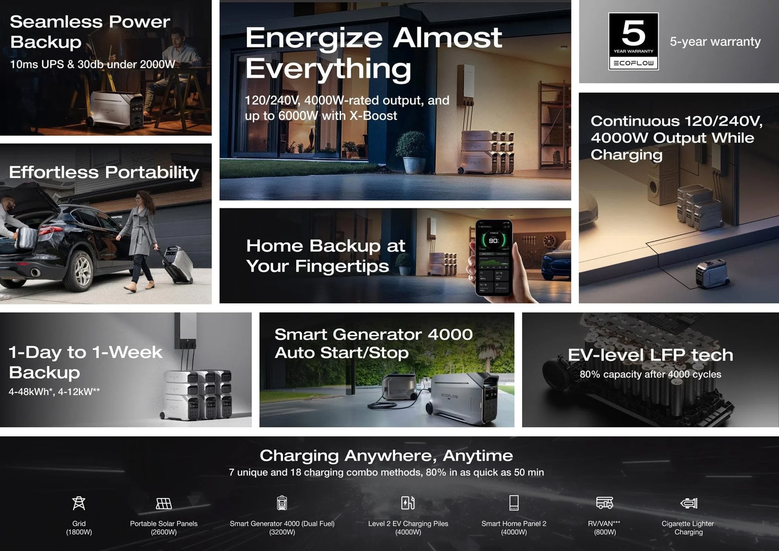 • High Power Output: 4000W (up to 6000W with X-Boost), ideal for high-power appliances like refrigerators, washers, and microwaves.